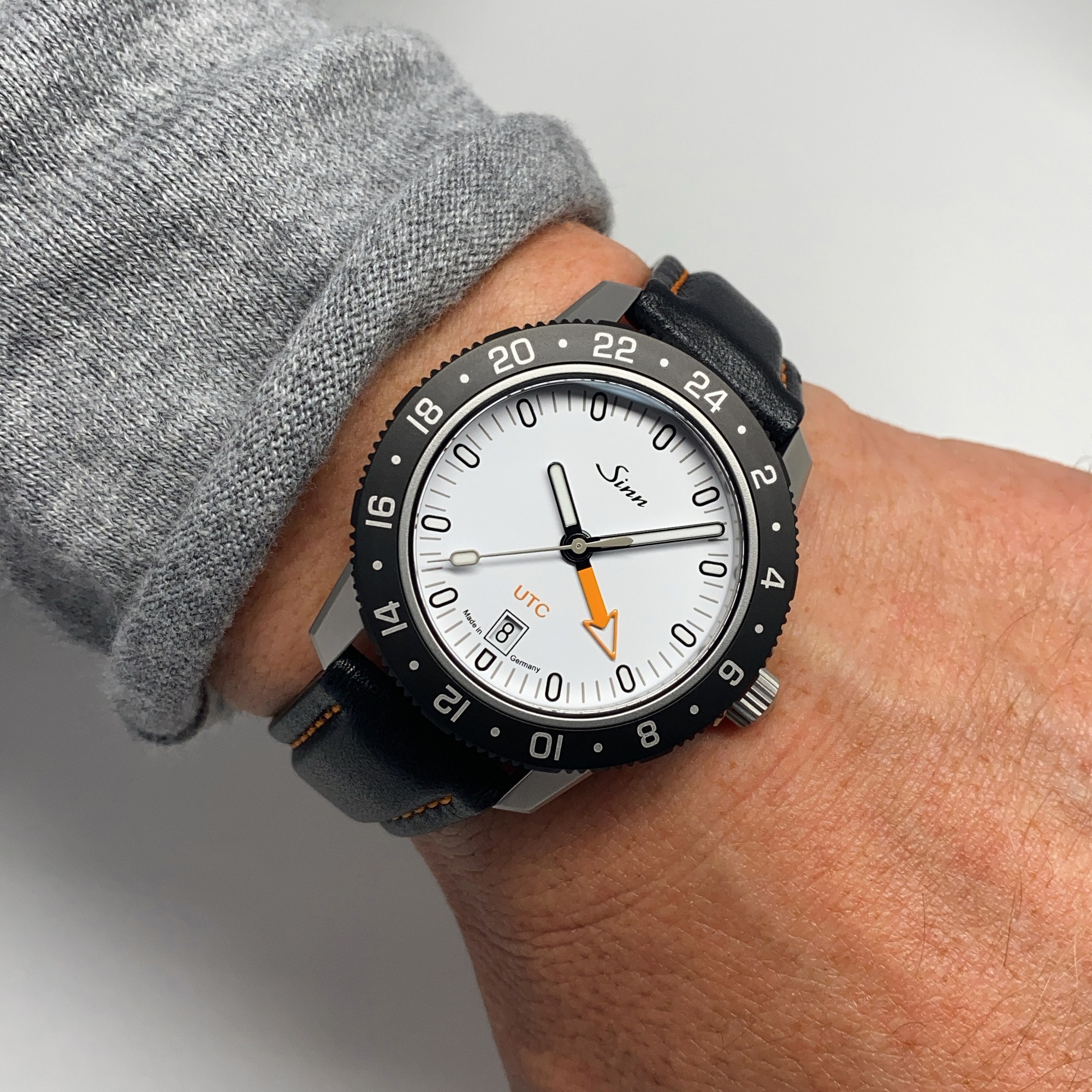 テクニカルでスポーティな外観に多彩な機能を加えたこの時計は、妥協のない機能と高品質なデザインを新たな形で融合させています。このモデルの第二時間帯表示は24時間刻みの両方向回転ベゼルを使って設定でき、この方法であればリューズを使ってオレンジ色のUTC針をセットする必要がなく、数秒で完了します。もちろん、リューズを使って従来の方法でUTC針をセットし、回転ベゼルを初期位置のままにしておくことも可能です。また、矢印の形をしたUTC針は、現在の太陽の位置が見えているときに、大まかな基本方位を決めるのにも使うことができます。回転ベゼルにはブラック・ハード・コーティングが施され、サンドマット加工のケースに特殊結合方式で固定されているため、絶対に外れることがありません。
