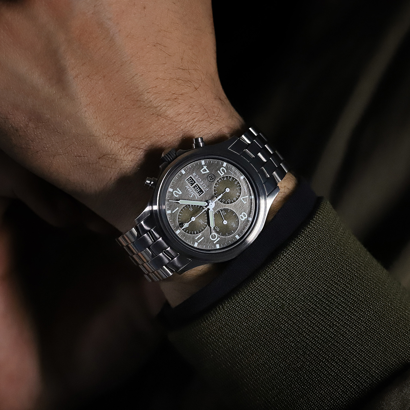 伝統的な計器式クロノグラフのデザインを踏襲した358.SA.FLIEGER.DSは、明確さ、機能性、エレガンスに加えて、手作業でスクラッチ加工を施したダイヤルが特徴です。